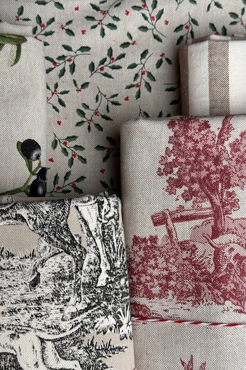 Entdecken Sie unsere handgenähten Textilien: Tischdecken, Tischläufer und Servietten.
