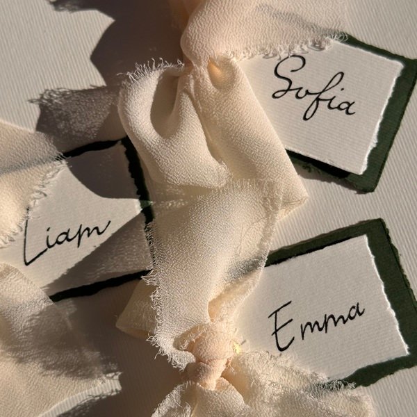 Handgemachte Tischkarte mit Schleife