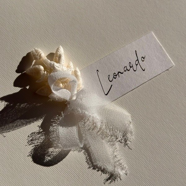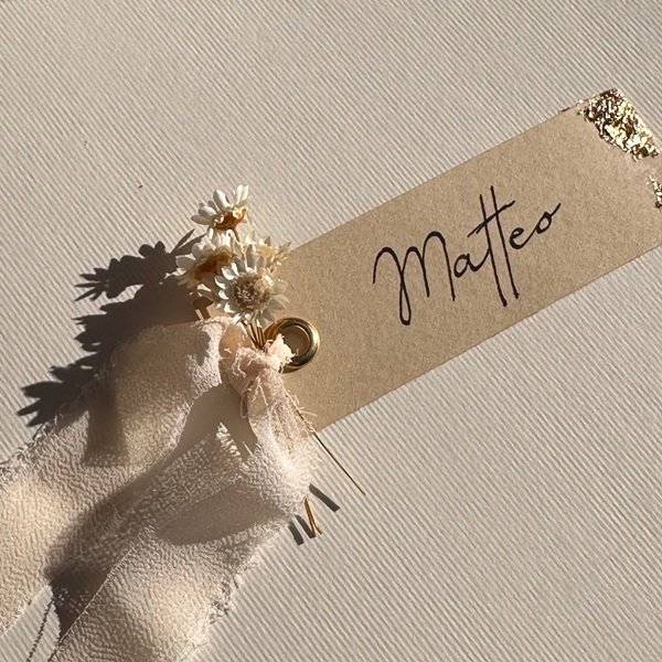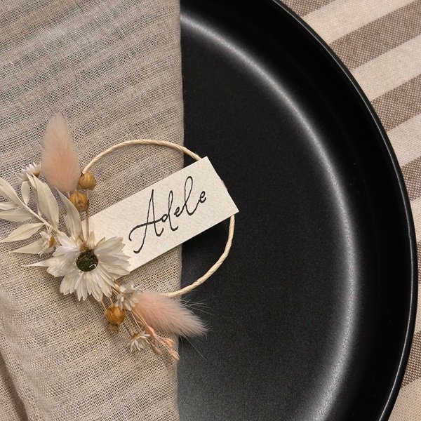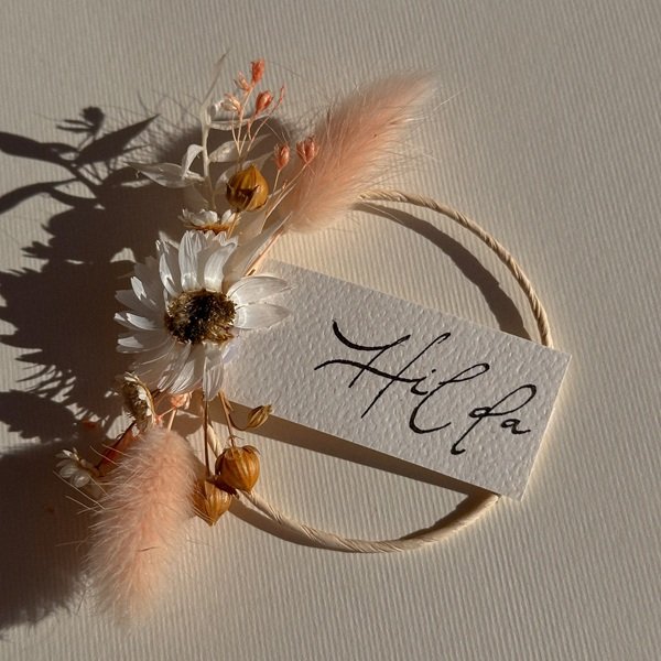 Tischkarte mit getrockneten Blumen
